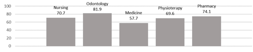 In order to investigate whether the kind of faculty could influence the knowledge, the association between the score and the faculty was analyzed. A significant difference was found between the Nursing and Pharmacy students (1.6 vs 2.7 respectively; p=.022).