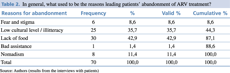 Table 2. In general, what used to be the reasons leading patients’ abandonment of ARV treatment?