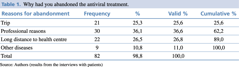Summing up, hunger, illiteracy and nomadism are key problems, all directly related to poverty. Therefore, different variables associated with poverty determine the abandonment of most of the interviewed patients. Lack of money to get a transport to the health centre, lack of money to buy food and moving from one place to another (nomadism) looking for better living conditions are actually all poverty variables. The intervention of trained volunteers plays an important role for the reintegration of the patients who had abandoned treatment.