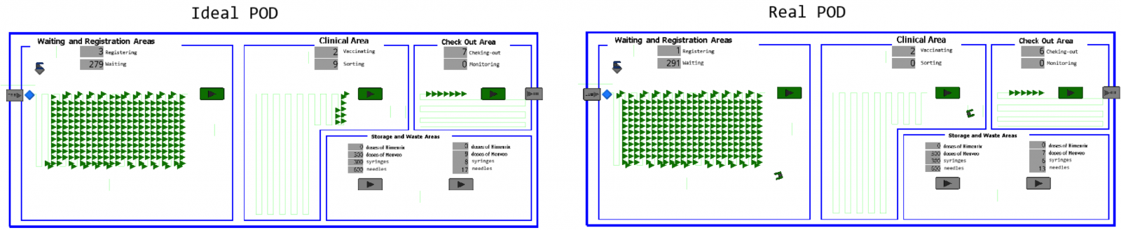 By using two instances of the simulator, the ideal vaccination POD and the real vaccination POD defined in the introduction of the case-study have been tested together (Figure 8).